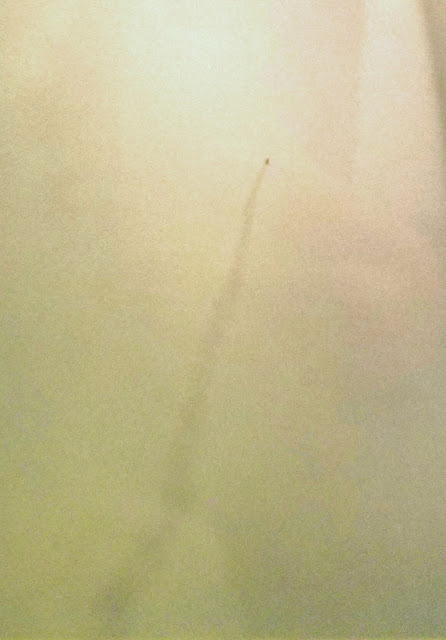 The day was overcast. I posed my model next to an Estes version for scale, and then selected sn F-7 for her maiden flight. I pulled the trigger on my camera a little early when she lifted off, due to the super slow motor, but that allowed me to advance the film and get another shot as she lumbered into the sky! The parachute deployed perfectly, and then disaster struck!